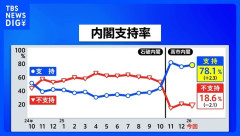 引用元: それでも動く名無し 2026/01/11(日) 23:36:02.59 ID:U1nKWNne0 最新のJNNの世論調査で、高市内閣の支持率が先月の調査から2.3ポイント上昇して、78.1%でした。 一方、「支持しない」と答えた人は先月から2.1ポイント下落して、18.6%でした。 3: それでも動く名無し 2026/01/11(日) 23:36:43.00 ID:U1nKWNne0 各党の支持率は以下の通り。 自民 29.7%(0.2↑) 立憲 5.0%(1.3↓) 維新 5.0%(0.0→) 国民 6.3%(2.2↑) 公明 2.8%(0.1↑) 参政 3.7%(0.6↓) れいわ 1.2%(0.3↓) 共産 1.1%(0.7↓) 保守 0.8%(0.4↓) 社民 0.2%(0.0→) みらい 0.1%(0.4↓) その他 0.3%(0.2↓) 支持なし40.3%(0.8↑) JNNでは、コンピュータで無作為に数字を組み合わせ、固定電話と携帯電話両方をかけて行う「RDD方式」を採用しています。…