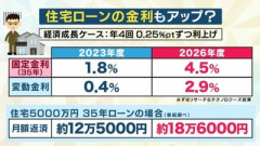 1: 名無し 2026/01/12(月) 20:18:42.55 ID:rE9wT4kM0 日銀の決定でデメリットもある。住宅ローンの金利も上がってしまう可能性がある。まず固定金利の場合、2023年度、1.8%だったものが、2026年度には4.5%にまで上がり、一方、変動金利の場合、2023年度、0.4%だったものが、2026年度には2.9%まで上がる可能性がある。 例えば、5000万円を借り入れて変動金利で、35年の住宅ローンを組んだ場合、毎月の返済は約12万5000円だったものが、2026年度の毎月の返済額は、約18万6000円となり、金利が2.5%上がることで、6万円増えることになる。 FNNプライムオンライン ■要約 ・日銀の利上げ継続シナリオにより、住宅ローン金利が大幅上昇する試算が浮上。 ・2026年度には変動金利が2.9%、固定金利が4.5%に達する可能性がある。 ・5000万円の借入ケースでは、月々の返済額が約6万円増加する大きな負担増。 ・賃金と物価の好循環が前提だが、短期間での急激な金利上昇への懸念も残る。 ■解説 金利のある世界への回帰は、日本経済が「デフレのぬるま湯」から脱却するための避けて通れないプロセスです。確かに住宅ローンの負担増は家計に響きますが、これまでが異常な低金利すぎたという側面も無視できません。重要なのは、金利上昇の痛み以上に、高市政権が掲げる「強い経済」の実現によって、国民の所得を底上げできるかどうかという一点に尽きます。 野党や一部メディアは不安を煽るかもしれませんが、安田教授が指摘するように、金利が上がるということはそれだけ経済に活気があり、賃上げが継続していることの裏返しでもあります。中韓など他国の経済が失速する中で、日本が健全な金利水準を取り戻し、通貨の価値を守ることは、長期的には国益にかなう判断といえるでしょう。 もちろん、ローンの駆け込みや借り換えといった個別の対応は必要ですが、日本全体としては「安い日本」を脱し、投資と成長が循環するフェーズへ移行するための生みの苦しみと捉えるべきです。政府には、金利上昇に負けないスピードでの実質賃金上昇を確実なものにするため、さらなる成長戦略を期待したいところですね。…