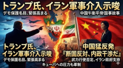 1: 名無し 2026/01/12(月) 20:35:14.22 ID:Z7xR9pLm0 トランプ大統領がイランへの軍事介入の可能性に言及していることについて、中国外務省は反対する考えを表明しました。トランプ氏は11日、反政府デモ参加者を保護する名目で介入を示唆。これに対し中国側は「他国への内政干渉に反対する」と主張し、武力行使に頼らず地域の安定に資する行動を求めると述べています。 Yahoo!ニュース(TBS NEWS DIG) ■要約 ・トランプ大統領がイランのデモ参加者保護を名目とした軍事介入を示唆。 ・中国外務省の毛寧報道官は、米国の動きを「内政干渉」として強く批判。 ・中国は武力行使に反対し、イラン政府による国家安定の維持を支持する立場を強調。 ・米国によるキューバへの圧力についても「外部干渉に反対」と中国が牽制。 ■解説 「内政干渉」や「主権の保護」という言葉を並べていますが、これこそ独裁国家同士が手を取り合って現状維持を望む構図そのものです。自国の周辺で他国の主権を脅かしている中国が、中東の問題では「国際法」を持ち出すという露骨な使い分けには、国際社会も冷ややかな目を向けているでしょう。 高市政権が掲げる「自由で開かれた国際秩序」からすれば、人権を弾圧する政権の安定を「希望する」という中国の姿勢は到底容認できるものではありません。トランプ政権の強力な対外姿勢は、中東だけでなく東アジアの抑止力にも直結するため、日本としては米国との緊密な連携を維持しつつ、中国による身勝手な論理の拡大を阻止していく必要があります。 キューバ問題まで引き合いに出して米国を牽制するあたり、中国は反米勢力を結集させて対抗軸を作ろうと躍起になっているようです。エネルギー供給源であるイランを必死に守りたいという中国の経済的・戦略的下心が透けて見えますが、こうした「ならず者国家」の擁護が世界の不安定化を招いている現実を、我々は冷静に直視すべきでしょう。 韓国政府、日本主導のTPP加盟に意欲 日韓首脳会談で協議も ネット民「シャインマスカット栽培を黙認してる時点で無理だろ」 【研究】 がんを死滅させる細菌、アマガエルから発見 注射1回で腸の腫瘍完治 特効薬となる可能※ 【動画】 「3並べ」の必勝法を知っておこう。3並べで無双する人www!!…