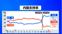 1: 2026/01/12(月) 08:12:39.88 ID:XGNlC1wL0 高市内閣支持率78.1% 先月調査から2.3ポイント上昇 JNN世論調査…