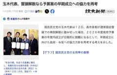 1 : 玉木代表、冒頭解散なら予算案の早期成立への協力を再考 国民民主党の玉木代表は12日、高市首相が通常国会冒頭での衆院解散に踏み切った場合、2026年度政府予算案の年度内成立が日程的に困難になるとして、早期成立に向けた政府・与党への協力方針を再考する考えを示した。 同党は昨年12月、所得税の非課税枠「年収の壁」の引き上げで自民党と合意した際、早期成立への協力を約束していた。玉木氏は11日のフジテレビ番組でも、予算案などへの「賛成を確約できなくなる」と述べた。 2 : いちいち協力を盾(と言うか取引材料)にするから 解散する必要があるんだろが 3 : 玉木w ああ見えて常識わかってんじゃねえか…