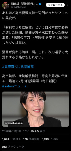 【謎】ヤフコメ、高市早苗批判に転向