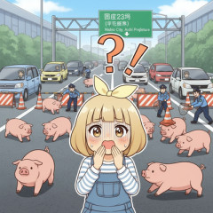 1: 匿名 2026/01/12(月) 17:36:14 ID:eqbon0oR9 速報です。 12日午後、愛知県西尾市の国道23号・西尾東インター付近で「ブタが逃げている」などと複数の通報がありました。 警察によりますと、通報があったのは午後3時前で、現場に駆けつけた警察官も逃げているブタを確認しましたが、逃げたのは10頭以上だということです。 ブタはまだ捕まっておらず、国道23号の一部区間を通行止めにし、警察などがブタの捕獲を進めています。 【メ~テレ】 2026/1/12(月) 16:08 【速報】国道23号でブタ10頭以上が逃走 国道を通行止めにして警察などが捕獲作業中 愛知県西尾市(メ〜テレ(名古屋テレビ)) - Yahoo!ニュース速報です。12日午後、愛知県西尾市の国道23号・西尾東インター付近で「ブタが逃げている」などと複数の通報がありました。 警察によりますと、通報があったのは午後3時前で、現場に駆けつけた警察官もYahoo!ニュース…