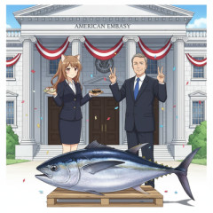 すしざんまい木村社長、5億円まぐろ持参しアメリカ大使館を訪問、グラス大使は「勝利のポーズ」で歓迎