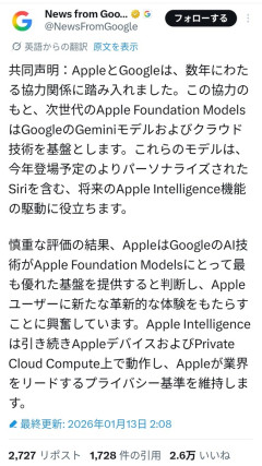 【画像】Apple、GoogleのGeminiをsiriの基盤モデルに採用wwwwww