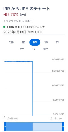 1 : 以下、?ちゃんねるからVIPがお送りします :2026/01/13(火) 16:43:03.987 ID:NicsCqxZ0.net一瞬で通貨価値マイナス95%になった模様3 : 以下、?ちゃんねるからVIPがお送りします :2026/01/13(火) 16:43:38.844 ID:Q7I4QmJE0.netじゃあ買っとく?転載元スレッド:…