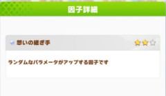 273: 名無しのトレーナー 26/01/12(月) 02:46:22 ID:iY.c2.L50 ステゴの先駆者いたら聞きたいんだが、勝つために継承スキル取るのってアリ?それとも継承しない固有継承スキルを取るのは論外? 274: 名無しのトレーナー 26/01/12(月) 02:46:57 ID:ye.lu.L27 進化してないステゴ固有ってこと? 275: 名無しのトレーナー 26/01/12(月) 02:47:12 ID:op.o7.L55 因ガ中のレースに勝つためにって話? 276: 名無しのトレーナー 26/01/12(月) 02:47:22 ID:ye.lu.L27 ああ、因果か 280: 名無しのトレーナー 26/01/12(月) 02:48:24 ID:iY.c2.L50 >>275>>276そそ勝つ確率あげるために絶対に継承にはならないスキルを取るのは本末転倒なのかそこまでして行かないと勝っていけないのか 277: 名無しのトレーナー 26/01/12(月) 02:47:43 ID:XE.fo.L34 ステゴ愛者じゃないけど継承スキル3個取れば白因子1個増える可能性あるし取ってもええんやないか?ワイは因果の時はいつも取ってる 278: 名無しのトレーナー 26/01/12(月) 02:47:47 ID:lI.is.L81 継承固有3つつけると想いのなんちゃらって白いスキルつくから取るなら3つとってみれば 279: 名無しのトレーナー 26/01/12(月) 02:47:47 ID:lp.8p.L124 継承スキルは3つ以上とると想いの継ぎ手って因子つくで、確率で 281: 名無しのトレーナー 26/01/12(月) 02:48:32 ID:MW.ss.L5 はえー部員は博識やね 282: 名無しのトレーナー 26/01/12(月) 02:48:35 ID:C2.wy.L44 因ガなら継承固有スキル3つ以上取ってると思いの継ぎ手になるから無しではないぞ 283: 名無しのトレーナー 26/01/12(月) 02:49:00 ID:iY.c2.L50 >>277>>278>>279えなにそれ そんなんあったんかい 284: 名無しのトレーナー 26/01/12(月) 02:49:16 ID:lI.is.L81 継承固有3つつけるくらいなら金スキル取るわって思ったりもする。そもそもあの白ランダム因子がどれくらい味のするのか知らない 285: 名無しのトレーナー 26/01/12(月) 02:49:29 ID:XE.fo.L34 想いの継ぎ手、太陽系、一年の計は気軽に狙っていけ 286: 名無しのトレーナー 26/01/12(月) 02:51:14 ID:C2.wy.L44 マイルならお嬢様とかも狙えるよね 287: 名無しのトレーナー 26/01/12(月) 02:51:28 ID:lp.8p.L124 そうですわね 288: 名無しのトレーナー 26/01/12(月) 02:51:44 ID:lI.is.L81 >>283因果してて自前金スキルとサポカで拾えるスキル拾っても勝てないのなら別の方法試した方がいいと思うの。赤因子妥協するとか本育成用のサポカ足すとか 295: 名無しのトレーナー 26/01/12(月) 02:56:06 ID:iY.c2.L50 >>288他の方法つってもそもそも適性Fとかスタートのとんでもない因果じゃないのステゴっていやまだ育成はしてないんだけどさ 296: 名無しのトレーナー 26/01/12(月) 02:57:30 ID:lI.is.L81 >>295ガチンコ部員はマイルDダートFとかやってるみたいやが多分はげるど。ワイは怖気ついてマイルDダートF本育成サポカで因果した 297: 名無しのトレーナー 26/01/12(月) 02:57:48 ID:lI.is.L81 マイルDダートEや 311: 名無しのトレーナー 26/01/12(月) 03:05:13 ID:iY.c2.L50 >>296>>297サンガツ自分で考えてた感じだとマイルDダートFスタートだったもんでな…継承前のマイル戦とか一番やばいなと 298: 名無しのトレーナー 26/01/12(月) 02:58:47 ID:vR.av.L37 ステゴ因果辛いならステゴ育成すればええねんステゴにはステゴ固有が初期装備やぞ 312: 名無しのトレーナー 26/01/12(月) 03:10:38 ID:lI.is.L81 自前の金スキルが優秀なのもあってマイルDでもそこまで朝日杯はそこまでしんどくなかった余。1番ストレス感じたのが南部杯やあそこだけはどうしようもなくてシニア期に回したりしてたけどそれでも負けてさよならバイバイ何回かくらった 313: 名無しのトレーナー 26/01/12(月) 03:11:30 ID:iY.c2.L50 >>312そっか南部杯とか鬼門は最後に回せるのか脳死でクラシック期に入れてるローテばっかだったが過酷な因果の場合はそこまで考えなきゃいけないんだな… 314: 名無しのトレーナー 26/01/12(月) 03:12:02 ID:C2.wy.L44 ステゴ引いてるし因ガは部員に任せるぜ 引用元: 【おんJ】ウマ娘 プリティーダービー部 第12064レース 管理人 因子周回めっちゃやってるけど知らなかったなんて言えない。今度から3個取ろう……