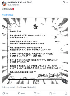 1: 2026/01/14(水) 03:19:52.35 「魁!!男塾【公式】」YouTubeチャンネルが収益化無効に “量産型コンテンツ”の烙印に「貴殿達こそ量産型のシステムで審査してるんじゃないのか?」(ITmedia NEWS) YouTubeの「魁!!男塾【公式】」チャンネルが収益化を無効にされ、江田島平八塾長が即時解除を迫る“檄文”を公開した。「目を覚ませYouTube!!」と一喝している。 1月13日にXで公開した檄文によると、収益化無効の理由は「量産型コンテンツ? というわけもわからぬ動画に認定されたからである」。 同チャンネルでは毎週2~3本のボイスコミックを掲載中。いずれも塾生達が1コマずつ切り抜き、魂のこもった声優達の演技を加え、制作部隊が寝る間も惜しんで編集したもの。「量産型でないことは一目瞭然」としている。 その上で、これらを量産型コンテンツと認定したYouTubeに対して「貴殿達こそ量産型のシステムで審査しているんじゃないのか?? しっかりとした『人間の目』で我々のチャンネルを判断されたし!!」と即時収益化無効の解除を求めた。 魁!!男塾は、宮下あきらさんが1988年から1991年まで「週刊少年ジャンプ」で連載した漫画作品。不良少年達を集め、スパルタ教育を施す「男塾」を舞台に、塾生達の友情と根性、そして死闘を描く。フジテレビ系列でアニメシリーズを放送した他、実写映画にもなった。 ※緊急伝令‼#収益化停止 pic.twitter.com/vx9wnnsVs4— 魁!!男塾ボイスコミック【公式】 (@vc_otokojuku) January 13, 2026 ※関連記事 【悲報】YouTube、続々収益化停止され終わるwwwww…