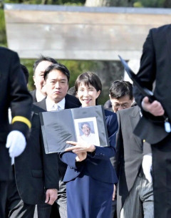高市早苗、安倍晋三の遺影をクリアファイルに入れてニッコリしながら左手でピースサインwwwww