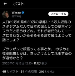 引用元: それでも動く名無し 2026/01/14(水) 14:37:18.16 ID:oaPCpmCq0 人口89万の県の30万の県都に1.5万人収容のスタジアムなんて日本の国としての基本インフラだと思うけどね。それが老朽化してニーズに合わないからそろそろ建て替えようって話でしょ? ブラウがJ2で頑張ってる事とか、Jの求める標準規格とかは、きっかけとして活用するのが適切かと? 2: それでも動く名無し 2026/01/14(水) 14:37:54.57 ID:oaPCpmCq0 ちなみにブラウブリッツ秋田公式のカメラマンのお言葉…