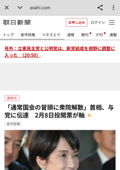朝日新聞号外:立憲民主党と公明党は、新党結成を視野に調整に入った (20:50)