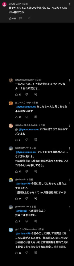 引用元: 23: Vtuberまとめ2026/01/14(水) 18:53:26.63 もう表のコメ欄でもXでもさくらみこ黒幕として叩かれてて草 これはもう止まらんぞ 完全に優遇、ゆびふる、龍が如く、ぷよテトで邪悪なのバレたからな 40: Vtuberまとめ2026/01/14(水) 18:53:44.22 >>23 めちゃくちゃ叩かれてて草w もう終わりやろこれ 57: Vtuberまとめ2026/01/14(水) 18:54:03.95 >>23 完全に表にみこは邪悪の黒幕ってバレたよな 65: Vtuberまとめ2026/01/14(水) 18:54:16.37 >>23 ぷよテトって何があったの? 知らないから教えて 67: Vtuberまとめ2026/01/14(水) 18:54:22.87 >>23 本当の表って株価ですよ Xじゃないですよw 157: Vtuberまとめ2026/01/14(水) 18:56:25.24 >>23 もうこういう動画のコメ欄はみこアン掲示板になってるやん 186: Vtuberまとめ2026/01/14(水) 18:57:00.00 >>23 表で叩いてるやつはアホだろw…