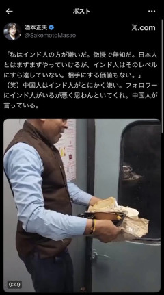 1: 2026/01/14(水) 21:14:38.44 「私はインド人の方が嫌いだ。傲慢で無知だ。日本人とはまずまずやっていけるが、インド人はそのレベルにすら達していない。相手にする価値もない。」(笑)中国人はインド人がとにかく嫌い。フォロワーにインド人がいるが悪く思わんといてくれ。中国人が言っている。pic.twitter.com/UiJGy61rTN — 酒本正夫 (@SakemotoMasao) January 13, 2026 ※関連記事 【画像】この漫画の「ダメ人間」と付き合っている彼女の話、少し怖くて草wwwww…