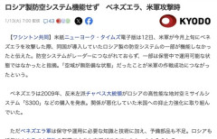 1 : ロシア製防空システム機能せず ベネズエラ、米軍攻撃時(共同通信) - Yahoo!ニュース 米紙ニューヨーク・タイムズ電子版は12日、米軍が今月上旬にベネズエラを攻撃した際、同国が導入していたロシア製の防空システムの一部が機能しなかったと伝えた。防空システムがレーダーにつながれておらず、一部は保管中で運用可能な状態ではなかったと指摘。「空域が無防備な状態」だったことが米軍の作戦成功につながったという。全文はソースで 5 : 使わない家電のコンセント抜いとくのは基本だろ 何かと危ないからね…
