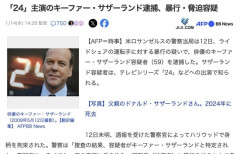 1 : 「24」主演のキーファー・サザーランド逮捕、暴行・脅迫容疑 米ロサンゼルスの警察当局は12日、ライドシェアの運転手に対する暴行の疑いで、俳優のキーファー・サザーランド容疑者(59)を逮捕した。サザーランド容疑者は、テレビシリーズ「24」などへの出演で知られる。 12日未明、通報を受けた警察官によってハリウッドで身柄を拘束された。警察は「捜査の結果、容疑者がキーファー・サザーランドと特定された。容疑者は、ライドシェアの車両に乗り込み、運転手(被害者)に暴行を加えた上で脅迫行為に及んだ」と明らかにした。 2 : >>1 24以前のキーファーに戻ったw 235 : >>2 緊急でどこかに移動するためかもよ…