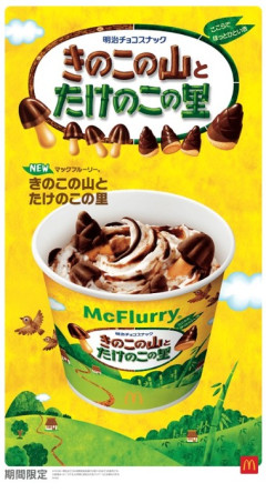 1: 名無し 2026/01/15(木) 11:57:21.82 ID:XbdA3pmG9 史上初!「きのこの山」と「たけのこの里」が同時に楽しめる!ごろごろ食感とオリジナルチョコソースの歴史的マックフルーリー®が登場!「マックフルーリー® きのこの山とたけのこの里」1月21日(水)より期間限定販売…