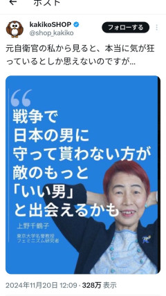 【画像】女さん「戦争で日本の男に守って貰わない方が敵のいい男と出会えていいかも」