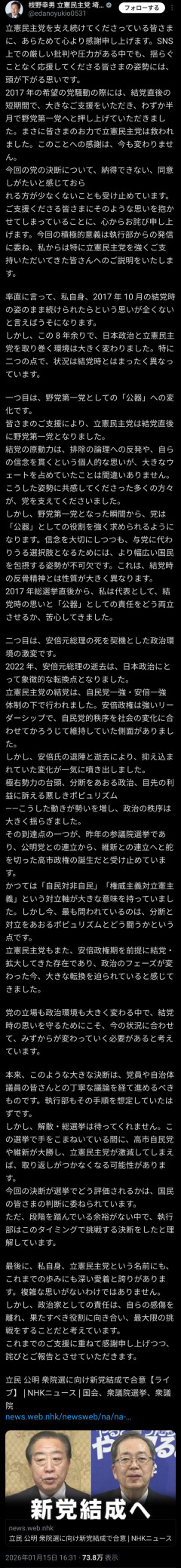 立憲・原口一博さん、立憲公明の「中道改革連合」結成合意に反発「誰が入るか!」政治団体「ゆうこく連合」を政党化すると表明 wwwwwwwwwwwwwwww