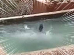犬はどうするの? 押された飼い主がプールに落ちた。大変だぁー! → 犬はこうする…