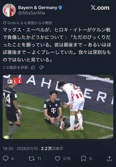500: 名無しに人種はない@実況OK (ワッチョイ e368-EA93 [2001:268:725d:2a71:*]) 2026/01/15(木) 21:49:37.42 ID:uaI5yigZ0イトヒロやっぱ痛めてるやんけ…