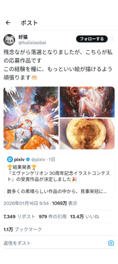 【悲報】エヴァ30周年記念イラストコンテストさん、めっちゃ上手い絵師を落選させてしまう。なお、モグ波作者は受賞wwwwww