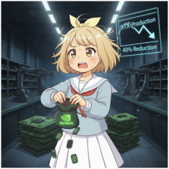 1: 匿名 2025/12/30(火) 18:48:02 ID:hQMG8qNV0.net 2025年に適切な価格で適切なGPUを見つけられたことを願います。 新たな報告によると、NVIDIAは2026年にRTX 50シリーズグラフィックカードの生産を大幅に削減する計画だからです。 原因は?ご想像の通り——AIとその記憶容量・ストレージへの飽くなき渇望が世界的な不足を引き起こしているのです。 この情報は中国のテックフォーラム「ボバンタン」で始まり、Benchlifeを経て最終的にOC3Dが報じました。 レポートによれば、NVIDIAは「メモリ不足に対応するため、2026年にGeForce RTX 50シリーズグラフィックカードのGPU生産能力を調整する」計画だとのこと。 削減幅はどれほどか?2025年前半と比較して、供給量が30~40%減少する可能性があります。 2025年に適切な価格で適切なGPUを見つけられたことを願います。 新たな報告によると、NVIDIAは2026年にRTX 50シリーズグラフィックカードの生産を大幅に削減する計画だからです。 GDDR7メモリ(RTX 5000シリーズに搭載されるもの)だけが問題を引き起こしているわけではない。 同レポートによれば、あらゆる種類のメモリが生産シフトを引き起こすほど逼迫しているという。 Benchlifeによれば、「複数のAICパートナーや部品サプライヤーも言及している」ように、16GBのGDDR7 VRAMを搭載するRTX 5070 TiとRTX 5060 Tiが最初に生産削減の対象となる見込みだ。 これが事実なら、PCゲーマーにとって非常に悪いニュースだ。 8GB VRAM搭載GPUは、要求の厳しい最新タイトルをプするには「不足気味」になりつつあり、16GB GPUオプションが枯渇すれば、 RTX 5080やRTX 5090に多額の費用をかけずに望む性能を得ることはさらに困難になるだろう。…