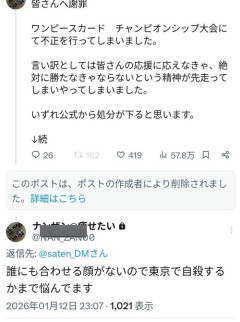 1: 2026/01/17(土) 07:07:24.475 ↓【店員ナンザンの解雇と店舗閉店について】#CK釧路店 pic.twitter.com/x0Xirs8iqo— カードキングダム釧路店(Shadowverse EVOLVE好評発売中!!) (@CK_kushiro) January 16, 2026 ※関連記事 女さん「え? 社内システム全てをワンオペしてる私を解雇ですか!?」…