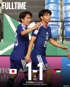1: 名無し@サカサカ10 2026/1/17(土) 16:49 🏆AFC U23アジアカップ サウジアラビア 2026 ⚔️準々決勝 🇯🇵U-23日本代表 1-1(PK 4-2) U-23ヨルダン代表🇯🇴試合はPK戦に突入、 道脇豊のシュートが相手GKに弾かれるも、喜んでいる最中にボールがゴールに吸い込まれるそのまま連続でPKを決めた日本がベスト4へ進出🔥 DAZN…