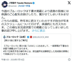 1: 名無しさん ID:/tbUXfXc9 1/16(金) 週刊少年マガジン(講談社)で掲載中の人気サッカー漫画「ブルーロック」の公式Xが16日に更新され、最新の第331話が一部「下書き」の状態で掲載したことについて謝罪。作画担当のノ村優介氏は自身のXで「ガス欠の末」だったと経緯を説明した。 同誌は「『ブルーロック』第331話「LOGIC」におきまして、一部原稿が下書きの状態で掲載されております」と言及。4月17日発売予定の単行本には「該当箇所を加筆修正した完成版の原稿にて収録」すると伝えた。 4: 名無しさん ID:FRNsO/Xn0 AI使えばよくね? 5: 名無しさん ID:f+2otSCE0 幽遊白書で免疫ついてるから心配すんな 6: 名無しさん ID:+iwoQAFe0 富樫なんて全部下書きで載せたことあるぞ。 173: 名無しさん ID:6/Rr3Xj90 >>6 奥さんが絵描いていたときもあるよね シャウアプフとか 10: 名無しさん ID:4x37nTcR0 週刊連載は生命を犠牲にするからな 12: 名無しさん ID:GRP/995R0 セリフだけ 書きなぐってあるコマをみた時は 衝撃を受けたな 13: 名無しさん ID:tL5nOWj50 冷静に考えてみりゃ週刊連載ってイカれてるよな 16: 名無しさん ID:lbHqK3D20 まあ、稀に良くある…