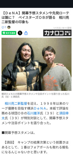 横浜DeNAベイスターズの開幕スタメン、意外と悪くないのではという声