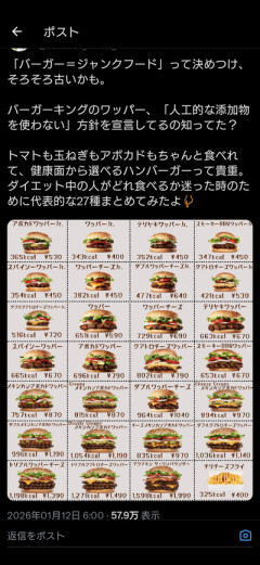 336 名前:名無しさん必死だな [] 投稿日:2026/01/12(月) 20:48:43.36 ID:+mhffXiF0 (´・ω・`) 342 名前:名無しさん必死だな [sage] 投稿日:2026/01/12(月) 20:49:51.39 ID:lZEaTxBR0 >>336 日本人なら米と魚ですぞ(´・ω・`) 348 名前:名無しさん必死だな [] 投稿日:2026/01/12(月) 20:51:02.14 ID:YUjLkdP10 >>336 取り敢えずワッパーひとつ(´・ω・`) 402 名前:名無しさん必死だな [] 投稿日:2026/01/12(月) 21:02:22.12 ID:lDtTE7u90 ワッパーも良いけど、バーキンのダブルチーズバーガーの満足度も高い(´・ω・`) マックの倍ダブチよりも満足度高いと思う(´・ω・`) 426 名前:名無しさん必死だな [sage] 投稿日:2026/01/12(月) 21:07:03.44 ID:JksEw/OI0 >>402 ベーコン入ってるやつ好き(´・ω・`) 393 名前:名無しさん必死だな [sage] 投稿日:2026/01/12(月) 21:00:16.64 ID:zAShmU7S0 >>336 ワッパー2つ食いたいからもう少しヘルシーにしてほしいなあ( ´・ω・` ) 414 名前:名無しさん必死だな [sage] 投稿日:2026/01/12(月) 21:05:21.57 ID:yFVLT22N0 マックがメニュー意見公募すると「ヘルシーなもの」という希望が大量に集まるけど実際に作ると全く売れない、って話を >>393読んで思い出した(´・ω・`) 430 名前:名無しさん必死だな [sage] 投稿日:2026/01/12(月) 21:07:36.90 ID:zAShmU7S0 >>414 ヘルシーな(+他と同じくらい美味くて安い)ものだからね ヘルシーな物って不味いんだ(´・ω・`) 438 名前:名無しさん必死だな [sage] 投稿日:2026/01/12(月) 21:10:03.88 ID:JksEw/OI0 >>414 MGSVの無線ネタでそんなのあったね ミラーが資金稼ぎのために副業でハンバーガーショップ始めたけど 高級路線やヘルシー路線は鳴かず飛ばすで 結局ヒットしたのは身体に悪いジャンクなケミカルバーガーだったってやつ(´・ω・`) 異世界メイドの三ツ星グルメ 現代ごはん作ったら王宮で大バズリしました(2) (水曜日のシリウスコミックス)posted with AmaQuick at 2024.03.12U4(著), モリタ(著), nima(その他)講談社 (2024-03-08T00:00:00.000Z)¥759Amazon.co.jpで詳細を見る Hではじめた絶品バーガー ~え?ご注文はおっぱいですか~ 普及版4,180円…