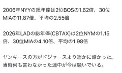 引用元: それでも動く名無し 2026/01/18(日) 15:23:45.10 ID:M2yUWefJ0 4: それでも動く名無し 2026/01/18(日) 15:25:31.77 ID:dDrX6C3gr >>1 今のLADって大谷後払いのインチキちゃうの? 7: それでも動く名無し 2026/01/18(日) 15:29:38.57 ID:L4hhWWI70 >>1 ドジャースより遥かに金に物言わせてて草 あの当時のヤンキースってマジで凄かったんやな…