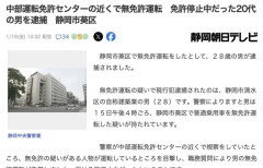 1 : 無免許運転の疑いで現行犯逮捕されたのは、静岡市清水区の自称建築業の男(28)です。警察によりますと男は15日午後4時ごろ、静岡市葵区で普通乗用車を無免許運転した疑いが持たれています。 警察が中部運転免許センターの近くで視察をしていたところ、無免許の疑いがある人物が運転しているところを目撃し、職務質問により男の無免許運転が発覚しました。男は免許停止中だったということです。 警察によりますと、男は「無免許運転したことに間違いはありません」と容疑を認めているということです。 5 : あー、静岡の中部運転免許センターは昔から出口で警察が待ち構えているのは有名な話…
