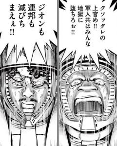 名無しさん : 26/01/04 出典:太田垣康男「機動戦士ガンダム サンダーボルト」(小学館) 名無しさん : 26/01/04 グレゴリー・ロマーノフ、フリオ・サワディー オッペンに2人がスパルタンに対して軌道上からコムサイによる特攻を命じられた、ルウムやソロモンで手足を失った傷痍軍人[注 10]。終戦時の混乱で後方にも送られるタイミングを逸し、ジオン残党軍内でも役立たずと持て余されていたところを指名された。ジオン流星勲章も授与され、特別配給の食事も与えられたが、体の良い厄介払いだった。母艦との通信が切れてからは愚痴をこぼしながらも陽気にしていたが、最期は本音を吐露しながらアトラスガンダムに撃破されて戦死する。 機動戦士ガンダム サンダーボルト - Wikipedia 名無しさん : 26/01/04 それはそう 名無しさん : 26/01/04 ジオン流星勲章であーる!…
