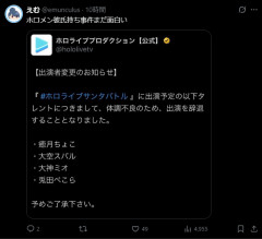 引用元: 8: Vtuberまとめ2026/01/18(日) 05:19:51.77 こいついつも正論しか言わないな 12: Vtuberまとめ2026/01/18(日) 05:20:11.71 >>8 え 40: Vtuberまとめ2026/01/18(日) 05:23:33.45 >>8 こういうやつがいるからクリスマスに病欠できないんだわ 53: Vtuberまとめ2026/01/18(日) 05:25:18.47 >>8 こいつさぁみこアンだと思ってたけど急にホロアンチになって野兎の醜態を晒したりし始めたんだよね 60: Vtuberまとめ2026/01/18(日) 05:26:37.50 >>53 えむ ナギ マリア 今は話題になってから全員みこアンに転生したぞ 61: Vtuberまとめ2026/01/18(日) 05:26:41.51 >>8 えむたんずっとご機嫌だよな 63: Vtuberまとめ2026/01/18(日) 05:26:54.32 >>53 攻撃対象絞ってたらネタ切れするし 86: Vtuberまとめ2026/01/18(日) 05:30:22.06 >>60 えむってやつは最近ホロリスを晒してる 野兎の顔面も普通に拡散されてるぞ ぺこらのにんじん桶を特級呪物とバカにしたり ぼたんのラーメンもバカにしてる 97: Vtuberまとめ2026/01/18(日) 05:31:23.20 >>86 最近は🌸叩き一色だぞ 稼げるから…