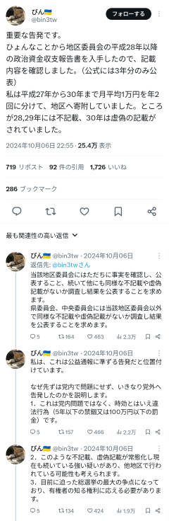 【悲報】日本共産党、政治資金報告書不記載を告発した党員を除籍