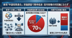 1: 名無し 2026/01/19(月) 15:12:33.45 ID:pL9vK8nR0 朝日新聞社が1月17、18の両日に実施した全国世論調査で、立憲民主党と公明党が立ち上げた新党「中道改革連合」が高市早苗政権に対抗できる勢力になると思うか質問したところ、対抗できる勢力に「ならない」が69%を占め、「なる」は20%だった。高市内閣を「支持しない」層に限っても、「なる」は37%に留まり、52%が「ならない」と回答している。 朝日新聞(Yahoo!ニュース) ■要約 ・朝日新聞の世論調査で、新党「中道改革連合」への期待の低さが露呈。 ・国民の約7割が、新党は高市政権の対抗軸には「ならない」と判断。 ・内閣不支持層の中ですら、半数以上が新党に懐疑的な見方。 ・「数合わせ」の野合に対する有権者の厳しい視線が浮き彫りに。 ■解説 朝日新聞の調査でこれほど残酷な数字が出るとは、新党側にとっては相当なショックだろう。特筆すべきは、現在の高市政権を支持していない層ですら、その過半数が「この新党では対抗できない」と見放している点だ。これは単なる支持・不支持の次元を超えて、政党としての信頼性や実効性が根本から疑われていることを意味している。 安全保障や憲法観で真逆の主張をしてきた立憲と公明が、選挙のためだけに看板を掛け替えても、有権者はその不自然さを敏感に察知している。高市首相が揺るぎない信念と決断力で国難に立ち向かう姿勢を見せている中、政策の整合性を欠いたまま「中道」という便利な言葉に逃げ込む姿勢は、むしろ政治不信を加速させているのではないか。 対抗勢力としてのリアリティがこれほど欠如している現状では、来るべき衆院選も高市政権の独走を許す結果になりかねない。野党側に求められているのは「数の結集」ではなく、国家の行く末に対する責任あるビジョンだが、今の「中道改革連合」からはその気概が微塵も感じられないのが実情と言える。 ( ´_ゝ`)TBS、日テレ、テレ東などで日韓俳優の共演ドラマ増加 韓国「韓国でトップ俳優の出演料、製作費が高騰」日本「グローバル戦略」 海外「上手いな!」米大手書店が考えた日本作品トラップに海外が大騒ぎ 【衝撃】 タレントの大林素子さん、『とんでもない事実』が判明してしまう!!…