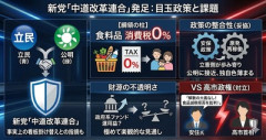 1: 名無し 2026/01/19(月) 16:32:45.92 ID:Wp7mN4vR0 立憲民主党と公明党の衆院議員による合流新党「中道改革連合」は19日午前の会見で、食料品の消費税を恒久的にゼロとする方針を明らかにした。会見した公明党の西田実仁幹事長は「政府系ファンドを創設し、株式配当や債券クーポンなどの運用で無理なく財源を確保する」と説明。立憲民主党の安住淳幹事長は「財源なしで消費税を下げるのはポピュリズム」と指摘し、高市首相が否定してきた食品消費税減税を打ち出すことで、政権との対決姿勢を鮮明にした。 ロイター(Yahoo!ニュース) ■要約 ・立民・公明の新党「中道改革連合」が食料品の消費税0%を柱とする綱領を発表。 ・財源は政府系ファンドの運用益で賄うという極めて楽観的な見通しを提示。 ・安保政策や原発再稼働でも立憲側が公明に歩み寄り、事実上の看板掛け替え。 ・安住氏は高市政権の解散を「大義がない」と批判し、食品減税を拒む首相を牽制。 ■解説 食料品を無期限で消費税ゼロにするというのは、一見魅力的に聞こえるが、その財源を「ファンドの運用益」に頼るというのはあまりに無責任なポピュリズムではないか。高市政権が掲げる、地に足のついた経済成長や安全保障の強化とは対照的な、選挙目当てのバラマキ公約と言わざるを得ない。投資環境が常に良好である保証はなく、運用失敗のリスクを考えれば、国家の基幹税制をそこに委ねる危うさが際立つ。 さらに、立憲側がこれまで声高に叫んできた「原発ゼロ」や「安保法制反対」といった主張を、新党結成のためにあっさりと修正(あるいは棚上げ)している点も不信感を禁じ得ない。結局のところ、政策的な信念ではなく「打倒高市」という一点のみで結集した野合に過ぎず、国民生活を安定させるどころか、かえって政局の混乱を招くリスクの方が高い。今は耳障りの良い言葉に惑わされず、日本の主権と経済の安定を第一に考える高市政権の決断を支持すべき局面だ。 ( ´_ゝ`)TBS、日テレ、テレ東などで日韓俳優の共演ドラマ増加 韓国「韓国でトップ俳優の出演料、製作費が高騰」日本「グローバル戦略」 海外「上手いな!」米大手書店が考えた日本作品トラップに海外が大騒ぎ 【衝撃】 タレントの大林素子さん、『とんでもない事実』が判明してしまう!!…