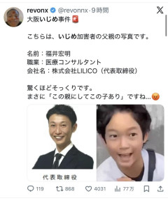 1: 名無しのアニゲーさん 2026/01/19(月) 15:12:42.184 ID:6SLVQwzCx やりすぎやろ 生徒が羽交い絞め、海に突き落とし動画拡散で物議 大阪市教委「重大ないじめ事案として認識」動画は今月17日にSNSで拡散した。首を絞められた被害生徒が苦しそうにしている様子や、海面でおぼれそうになり必死に浮かび上がる姿に加えて、周りの子どもたちが「ガチやん」「一回離せ」「さすがにやりすぎやん」などと笑っている様子も映されている。 市教委担当者は「(動画が投稿される)以前からそういうことがあったと把握・認識している」と話し、動画拡散前から対応していることに言及した。 被害生徒への対応にすでに取り組んでいるといい、「被害を受けた子どもの安全確保を最優先に、心身のケアなどを実施しています。引き続きケアを実施して参りたいです」。 加害生徒については「教育委員会としても、いじめは決して許されないと認識しておりますので、加害児 童・生徒に指導をしておりまして、今後もきちんと指導して参りたいです」と述べた。…