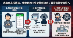 1: 名無し 2026/01/19(月) 17:05:12.84 ID:mN9pL3vQ0 北海道教育委員会は2026年1月19日、道立恵庭南高校の教諭が消費者金融業者から借り入れをする際、業者側の求めに応じてLINEの連絡先一覧のスクリーンショットを送信し、生徒や保護者ら38人の個人情報を漏洩したと発表した。漏洩したのは部活動の生徒17人、保護者4人、教職員1人のほか、知人などの名前と電話番号を含む画像7枚である。1月12日に生徒1人が業者から「教諭の借金が滞っているので返済するように伝えてほしい」とのショートメールを受信したことで発覚した。当該教諭は「帰省する交通費のことで頭がいっぱいだった」と話しているという。 ライブドアニュース(STVニュース) ■要約 ・恵庭南高校の教諭が消費者金融への借入審査で、自身のLINE連絡先情報を提供。 ・生徒17人を含む計38人分の氏名と電話番号が、業者側に画像形式で流出。 ・業者が生徒に対し、教諭に代わって借金の督促を行うという異常な事態に発展。 ・教諭の動機は「帰省費用の確保」であり、情報管理に対する著しい認識不足を露呈。 ・本日19日午後6時から、学校側による保護者説明会が実施される予定。 ■解説 教育者としての倫理観が完全に崩壊していると言わざるを得ない極めて悪質な事例だ。自らの個人的な借金のために、預かっている生徒やその保護者のプライバシーを「人質」同然に業者へ差し出すという行為は、信頼関係を根底から覆すものだ。特に、業者が生徒に対して直接督促のメッセージを送るという卑劣な手段を招いた責任は重い。 高市政権が国家レベルでのセキュリティ・クリアランス(適性評価)の導入を推進している今日、公教育の場においても同様の厳格な適性判断と情報管理意識が求められている。帰省費用が足りないといった安易な理由で、無関係な生徒を危険な金銭トラブルに巻き込むような人物が教壇に立ち続けていたこと自体、組織的な適性管理の欠如を示唆している。 学校側は単なる「研修」で済ませるのではなく、教育委員会を含め、当該教諭に対する厳正な処分を下すべきだ。個人情報の重みを知らない者が次世代を教える資格はなく、日本の教育現場における道徳心と危機管理体制の再構築が急務であることを、今回の事件は改めて突きつけている。 ( ´_ゝ`)TBS、日テレ、テレ東などで日韓俳優の共演ドラマ増加 韓国「韓国でトップ俳優の出演料、製作費が高騰」日本「グローバル戦略」 海外「上手いな!」米大手書店が考えた日本作品トラップに海外が大騒ぎ 【衝撃】 タレントの大林素子さん、『とんでもない事実』が判明してしまう!!…