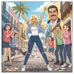 マドゥロ大統領のポスターが引き裂かれ歓喜するベネズエラ国民