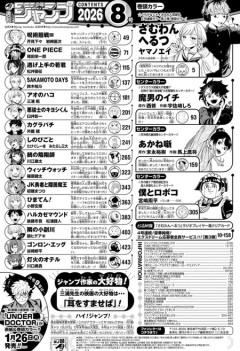 1 名前:名無しさん@おーぷん[] 投稿日:26/01/20(火) 00:07:19 ID:Re2x どうすんのこれ? 今週の掲載順 集合絵の表紙…