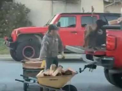【役に立ってる?】 車の荷台から木材を下ろしていた。ボクも手伝うよ! → 犬はこうします…