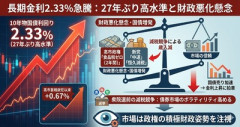 1: 名無し 2026/01/20(火) 12:25:32.45 ID:Xy7pQ9wR0 20日午前の東京債券市場で、長期金利の指標となる新発10年物国債の利回りが上昇し、一時2.330%をつけた。1999年2月以来、約27年ぶりの高水準となる。衆院選で与野党ともに大幅な減税を掲げる考えを示したことで、財政が悪化するとの懸念が拡大。国債を売る動きが続いている。 高市早苗首相は19日、衆院解散を表明し、食料品の2年間の消費税ゼロについて「検討を加速する」と語った。一方、立憲民主党と公明党が立ち上げた新党「中道改革連合」は、基本政策に恒久的な食料品の消費税ゼロを盛り込む方針だ。市場では、減税に伴って国債が増発されるとの見方が広がっている。 朝日新聞(Yahoo!ニュース) ■要約 ・長期金利(10年物国債利回り)が2.33%に急騰し、約27年ぶりの高水準を記録。 ・高市政権の「食品税ゼロ(2年間)」と新党「中道」の「恒久減税」により財政悪化懸念が波及。 ・国債増発を見越した売りが加速し、金利上昇に拍車がかかっている。 ・高市首相就任以来、金利は0.67%上昇しており、市場は政権の積極財政姿勢を注視。 ・衆院選を控え、各党の減税競争が債券市場のボラティリティを高める要因に。 ■解説 長期金利が27年ぶりの高水準に達したことは、日本経済が「金利のある世界」へと完全に移行したことを意味している。一部メディアは財政悪化への懸念を強調しているが、これは高市政権が掲げる「責任ある積極財政」への市場の期待と警戒が入り混じった結果と言える。金利は「経済の体温計」であり、長年のデフレ脱却に向けた産みの苦しみという側面も無視できない。 注目すべきは、高市首相が打ち出した「2年間限定」の食品消費税ゼロに対し、立民・公明の新党「中道改革連合」が「恒久的なゼロ」をぶつけてきた点だ。財源の裏付けが乏しいまま恒久減税を叫ぶ新党の姿勢こそが、市場に「無秩序な国債増発」という最悪のシナリオを想起させ、金利を押し上げている要因ではないか。高市政権の時限的な措置は、飽くまで物価高から国民生活を守り、経済を本格的な成長軌道に乗せるための戦略的投資である。 今は金利上昇のデメリットばかりに目を奪われるべきではない。適切な金利形成は、歪んだ金融緩和からの正常化であり、円安是正や預金者への利益還元にも繋がる。中国や韓国の経済が停滞し、米国が実利を優先する中で、日本が自立した強い経済を再構築するためには、一時的な市場の揺らぎを乗り越える強い意志が必要だ。高市首相が進める「未来への投資」が結実すれば、この金利水準は健全な経済成長の証として肯定されることになるだろう。 スマホ使用、※※※込み…共通テストでカンニング受験生7人失格 → 写真約200枚が確認される wwwwwwwwwwwwwwwwww ゲームメーカーさん「Epicストアでゲーム無料配布したらSteam版の売上が200%上がってワロタw」 韓国人「日本のコンビニに韓国人※※バイトがいない理由」…