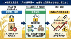 1: 名無し 2026/01/20(火) 20:30:15.48 ID:R8qXz9Wp0 農林水産省が価格の高騰を防ぐために続けてきたコメの転売を禁止する措置を解除する方針であることがわかりました。農水省はこの措置をあさって(22日)の午前0時に解除する方針だということです。去年産のコメが出回ったことで民間の在庫量が増えていて、品薄が解消されたことから判断したものとみられます。ただ、今月5日から11日までのコメの平均価格は5キロあたり4267円と高水準で、高止まりがいつ解消されるかは不透明な状況です。 Yahoo!ニュース(TBS NEWS DIG) ■要約 ・農水省が2026年1月22日午前0時をもってコメの転売禁止措置を解除する方針を固めました ・2025年6月から続いていた、購入価格を上回る価格での転売を禁じる政令が撤廃されます ・新米の流通により民間在庫が増加し、深刻な品薄状態が脱したと判断されました ・一方で、平均価格は5キロ約4,267円と依然として高い水準が続いています ■解説 高市政権下で進められてきた食料安全保障の強化策の一環として、市場の混乱を抑えるための緊急措置が一定の役割を終えたと言えます。悪質な転売ヤーによる買い占めや価格の吊り上げを法的枠組みで封じ込めたことは、生活者の不安を解消する上で妥当な判断でした しかし、解除されたからといって手放しで喜べる状況ではありません。引用データにある通り、コメの価格は依然として高止まりしています これは単なる需給バランスの問題だけでなく、肥料や燃料の高騰といったコストプッシュ要因が背景にあるためです。野党や一部メディアは「対策が遅い」と批判するかもしれませんが、供給不足を解消した上で段階的に市場原理へ戻すのは、経済運営として極めて真っ当な手順です。 今後の焦点は、転売禁止が解かれた後に再び投機的な動きが出ないかという点です。高市政権には、日本人の主食であるコメの安定供給を守り抜くため、必要であれば再び機動的な規制をかける柔軟さと、生産者の収益向上を両立させる骨太な農政を期待したいところです。 【中革連】立憲民主党さん、学会表ほしさにあっさり原発ゼロを撤回 → 安住幹事長「再稼働は容認してた!」 → ネット「立憲HPに全ての原発停止と廃... 【悲報】 一発屋漫画家「くそっ何度連載してもすぐ打ち切りになってしまう、せや!昔売れた漫画の新作描こw」 私がパスタを食べていた。こっちはまだですか? → 無言でカレはずっとこうします……