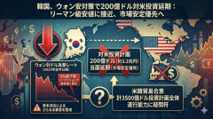 1: 名無し 2026/01/21(水) 10:35:12.45 ID:TrUmP824x 韓国政府は通貨ウォンへの強い下押し圧力を踏まえ、今年最大200億ドル(約3兆2000億円)の対米投資を行うという約束の履行を当面見送る方針だ。事情に詳しい関係者の話で分かった。 ウォンは2025年7月以降、対ドルで8%超下落している。当局による一連の対策や市場介入も、ウォンが世界金融危機以来の最安値に向かう下落基調を鈍化させるには至っていない。貿易合意の一環として韓国が総額3500億ドルの対米投資を表明したことで、韓国がこうした巨額の資本流出に耐えられるのかという懸念が強まっている。 Yahoo!ニュース(ブルームバーグ) ■要約 ・韓国がウォン安対策として、200億ドル(約3.2兆円)の対米投資計画を当面延期 ・2025年後半からウォンが対ドルで8%超下落し、リーマンショック級の安値に接近 ・米韓貿易合意に基づく計3500億ドルの投資計画そのものの遂行能力に疑問符 ・韓国政府は資本流出による自国通貨のさらなる暴落を警戒し、当面は市場安定を優先 ■解説 韓国経済が極めて深刻な瀬戸際に立たされていることが如実に表れたニュースです。トランプ政権との間で「関税回避」のカードとして切った巨額の対米投資という「約束」を、早くも履行できないと事実上の白旗を上げた形になります。ウォン安を防ぐためにドルを手放せないという現状は、韓国の通貨防衛能力が限界に近いことを示唆しています。 高市政権の下で日米同盟を軸とした経済安全保障を固める日本とは対照的に、韓国は「対米投資」という名目の資本流出にすら耐えられないほどファンダメンタルズが脆弱化しています。ベッセント米財務長官による口先介入も一時的な効果に留まっており、市場はすでに「韓国売り」の姿勢を鮮明にしています。 ここで日本として注視すべきは、韓国が経済危機を口実に、再び日本に対して通貨スワップの拡充や経済的支援を求めてくるリスクです。かつての教訓を忘れず、甘い顔を見せることなく自国の経済安保を最優先すべきでしょう。韓国の「約束を守れない」体質は外交のみならず経済分野でも露呈しており、トランプ政権がこの「約束反故」に対してどのようなペナルティを課すのか、今後の米韓関係の冷え込みは避けられない見通しです。…