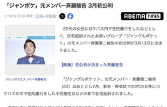 1 : 「ジャンポケ」元メンバー斉藤被告 3月初公判(ABEMA TIMES) - Yahoo!ニュース 20代の女性にロケバス内で性的暴行をしたなどとして、在宅起訴されたお笑いグループ「ジャングルポケット」の元メンバー斉藤慎二被告の初公判が3月13日に決まりました。 「ジャングルポケット」の元メンバー・斉藤慎二被告(43)はおととし7月、東京・新宿区で20代の女性にロケバスの中で性的暴行をした不同意性交などの罪で在宅起訴されました。全文はソースで…
