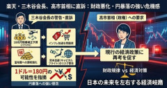 1: 名無し 2026/01/21(水) 22:18:45.12 ID:Rk9eM8ty0 楽天グループの三木谷浩史会長兼社長が、高市早苗首相に対し「円危機が始まった」と警告するメッセージを送っていたことが分かった。三木谷氏は1月13日、「円危機が始まりました。(1)財政バラマキによる財政悪化懸念(2)富裕層の懲罰課税によるキャピタルフライトと優秀層の日本離れ懸念です。すでに日本円の価値はドルベースで半分。インフレは加速します」と伝えたという。 三木谷氏は「このままの政策を続ければ、1ドル=180円まで進むかもしれない。最悪の円危機です」と警鐘を鳴らす。高市政権は2025年度補正予算で約18兆円規模の財政出動を決定し、その6割以上を赤字国債で賄っている。 週刊文春(NewsPicks) ■要約 ・楽天の三木谷会長が高市首相に対し、財政悪化と円暴落への強い危機感を直訴 ・18兆円規模の補正予算による「バラマキ」とインフレ加速を問題視 ・富裕層への課税強化が招く資本逃避(キャピタルフライト)のリスクを警告 ・為替が1ドル180円まで進む可能性を指摘し、現行の経済政策に再考を促す ■解説 日本を代表する経営者の一人である三木谷氏が、時の首相に対してこれほど踏み込んだ「警告」を直接送ったことは、現在の日本経済が抱える歪みが極限に達していることを示唆しています。特に高市政権が掲げる積極財政が、皮肉にも市場からは「国家財政への信認低下」と受け取られ、円安を加速させる燃料になっているという指摘は無視できません。 三木谷氏が最も危惧しているのは、単なる物価高だけでなく、日本の将来を担う「富裕層・優秀層」の海外流出です。懲罰的とも取れる課税強化が行われれば、資本は瞬時に国境を越え、日本は技術も富も失う空洞化を招く恐れがあります。これは経済安全保障を重視する高市政権にとって、最も避けなければならないシナリオのはずです。 一方で、高市首相側から返信がないという点は、政権内での「財政再建」対「積極財政」の議論が、まだ市場を納得させるレベルに達していない可能性を示しています。解散総選挙を前に、三木谷氏が1ドル180円という具体的な数字を出して警鐘を鳴らしたことは、有権者の「財布の実感」に直結する争点となるでしょう。経済成長を目指す攻めの政策が、逆に円の価値を破壊してしまわないか、政権には冷静な実務的バランスが今まさに求められています。 高市政権を容認する日本国民に社会派映画監督が激怒、「国民はもっと怒るべき」と訴えまくるも…… 【速報】 枝野幸男 「立民が原発ゼロと言ってたのは広報のミスで、原発再稼働に反対という政策を決めたことはない」信じて支持してた人たち、広報... 【お前を見ているぞ】 4階の窓から通りの風景を撮っていた。何か視線を感じるなぁ → すると……
