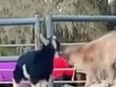 2匹の元気な子ヤギがいた。そこは遊ぶ場所じゃないんだけど → やさしいロバは気にしない…
