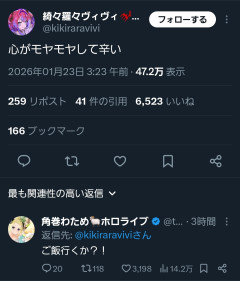 引用元: 493: Vtuberまとめ2026/01/23(金) 07:19:59.38 光の戦士が一人 498: Vtuberまとめ2026/01/23(金) 07:20:16.02 >>493 京 501: Vtuberまとめ2026/01/23(金) 07:20:18.36 >>493 派閥動きます 507: Vtuberまとめ2026/01/23(金) 07:20:30.83 >>493 野うさぎがこれ叩いてて意味わからんかった 511: Vtuberまとめ2026/01/23(金) 07:20:40.77 >>493 表でやるところが京 本当に仲良いならラインやディスコしてる 517: Vtuberまとめ2026/01/23(金) 07:21:04.09 >>493 こういう時だけすり寄ってくんなよ はあちゃまが言ってるのはこういうこと 521: Vtuberまとめ2026/01/23(金) 07:21:16.22 >>493 先に地獄でまってるぞ…… 523: Vtuberまとめ2026/01/23(金) 07:21:19.07 >>493 うわ 526: Vtuberまとめ2026/01/23(金) 07:21:27.29 >>493 だったら、なんでその気持ちをほんの少し…ほんの少しだけでいいから天音かなたに なんで分けてやれなかったんだ!!! 528: Vtuberまとめ2026/01/23(金) 07:21:35.02 >>521 死んでて草wwwwwww 542: Vtuberまとめ2026/01/23(金) 07:22:33.58 >>493 それをかなたん言えよ 546: Vtuberまとめ2026/01/23(金) 07:22:48.00 >>493 怖い 553: Vtuberまとめ2026/01/23(金) 07:23:03.82 >>511 そして誰も声かけないと冷たい仲間はずれあるわと煽るんですね 無敵かよ 561: Vtuberまとめ2026/01/23(金) 07:23:48.29 >>493 ぶぶ漬けか 568: Vtuberまとめ2026/01/23(金) 07:24:12.61 >>493 かなたそには言えなかった言葉 603: Vtuberまとめ2026/01/23(金) 07:27:02.78 >>517 辛い時に声かけてくれる優しい人じゃん 614: Vtuberまとめ2026/01/23(金) 07:27:46.62 >>603 天使には声かけたんか?…